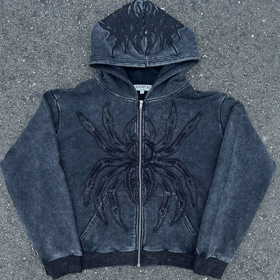 Custom Embossed Graphic Men's Heavyweight Hoodie. 450 gram Vintage Acid Wash. Streetwear stijl.